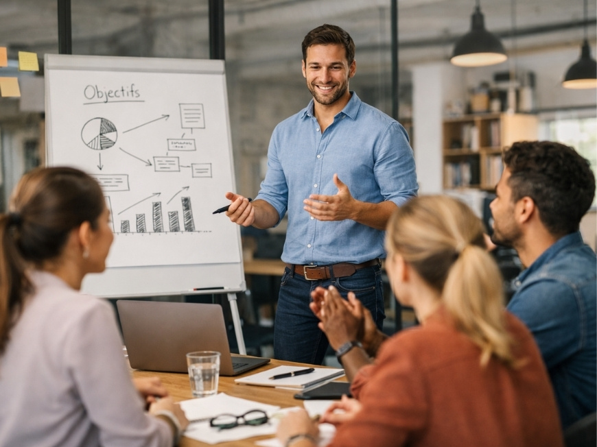 Dans une équipe, tout va plus vite quand les consignes sont claires. Un manager efficace sait expliquer ce qu’il attend, poser un cadre et donner une direction compréhensible pour tout le monde. À l’inverse, quand les messages sont flous, les incompréhensions arrivent très vite. C’est pour cela que la communication fait partie des compétences clés que l’on travaille dans un bachelor management.