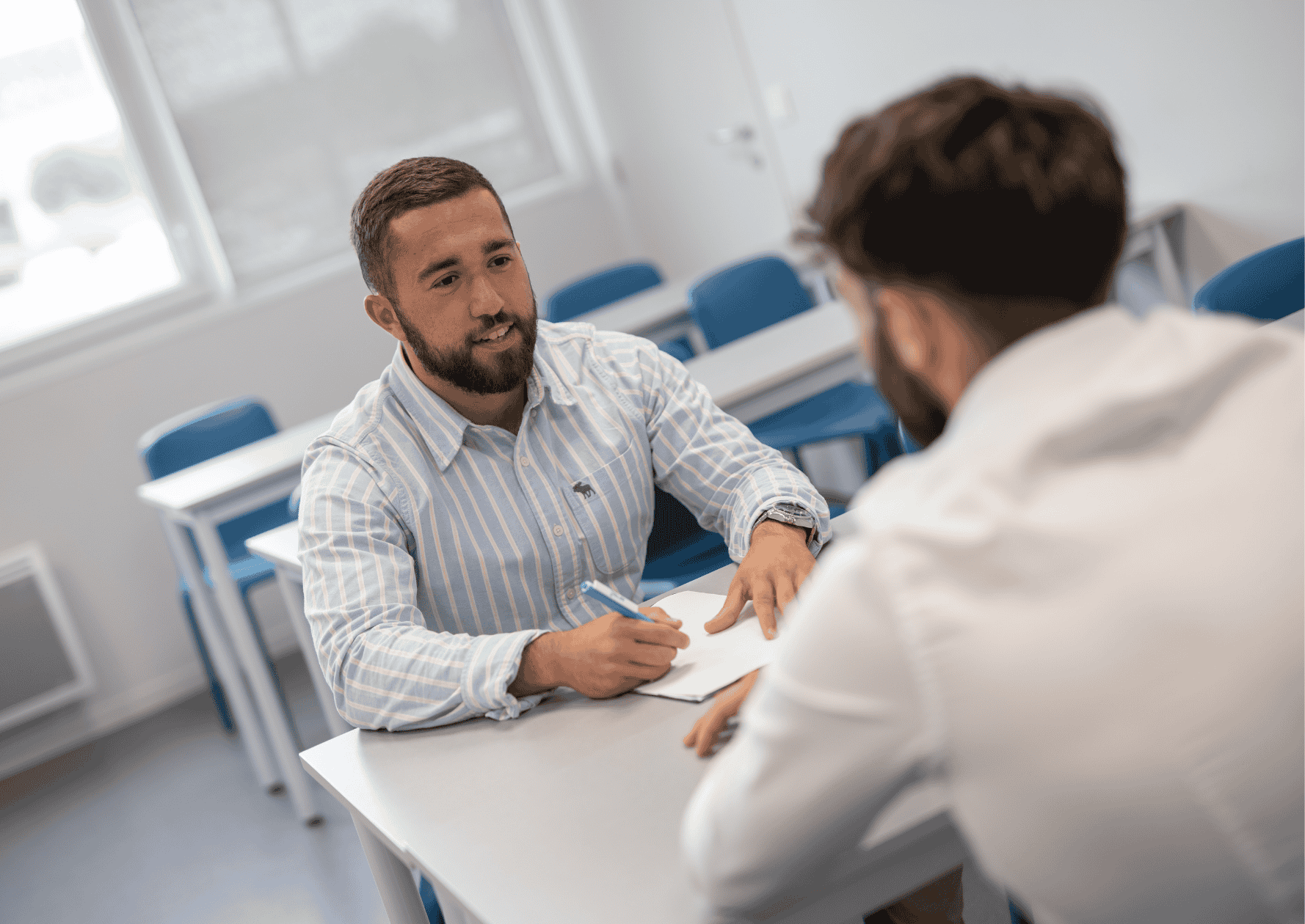 Un jeune homme passe un entretien d'embauche